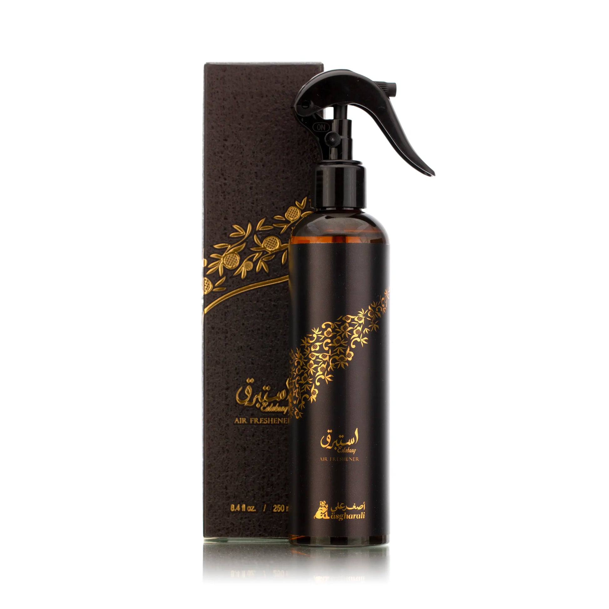 Estabraq 250 ML air freshener transforms any space into a haven of refined warmth. The fragrance opens with a vibrant burst of Bergamot, cinnamon bark, Mandarin, and Pepper. At its heart, Cedarwood, Geranium, Lavandin, and Sandalwood blend in perfect harmony, evoking depth and comfort. Finally, a sensual base of Amber, Musk, Tonka Bean, and Vanilla lingers gracefully — leaving a trail that’s both invigorating and irresistibly elegant.